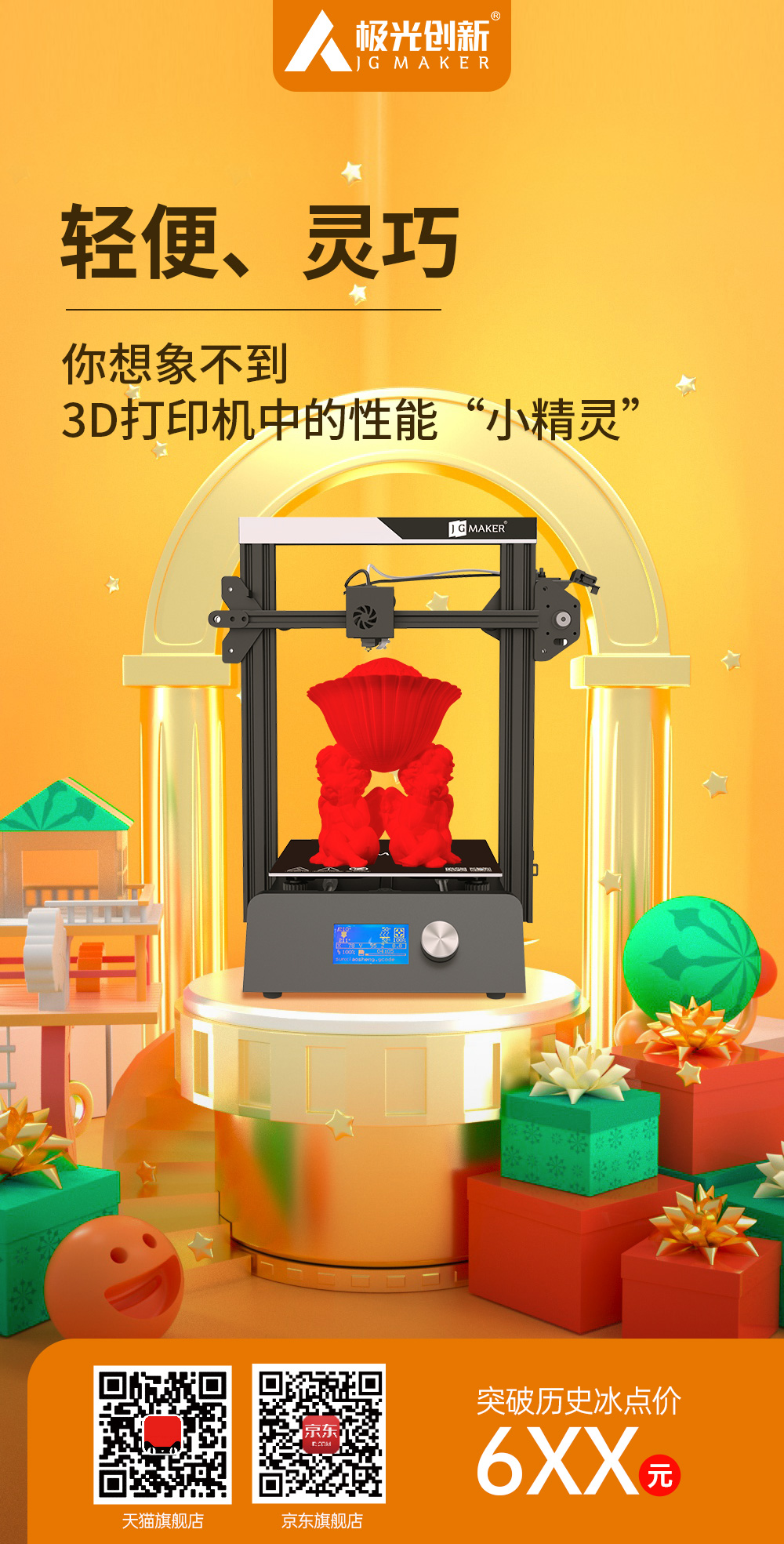 再加上雙十一年度鉅惠,A6價格降至2XXX歷史冰點價,購買同時還另有好禮相送!可以說同價位段性價比打遍天下無敵手,現(xiàn)在購買,對有大尺寸或有復(fù)雜模型打印需求的用戶來說簡直是至佳選擇。