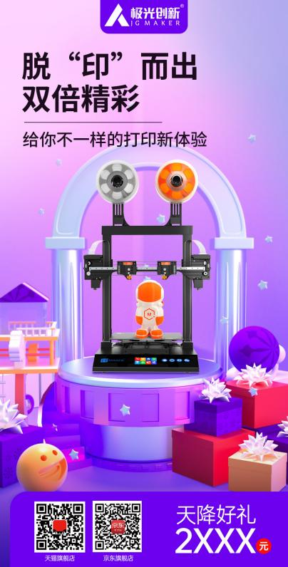 當(dāng)然,除了以上提到的機型,你還可以在極光創(chuàng)新天貓或京東旗艦店選購其它類型的3D打印機相關(guān)產(chǎn)品。時值雙十一購物節(jié)到來之際,極光創(chuàng)新旗下多款爆款產(chǎn)品折扣力度驚人,購買同時還有多種好禮相送,對于近期有購機計劃的朋友千萬不要錯過此次的雙十一購物狂歡節(jié)。